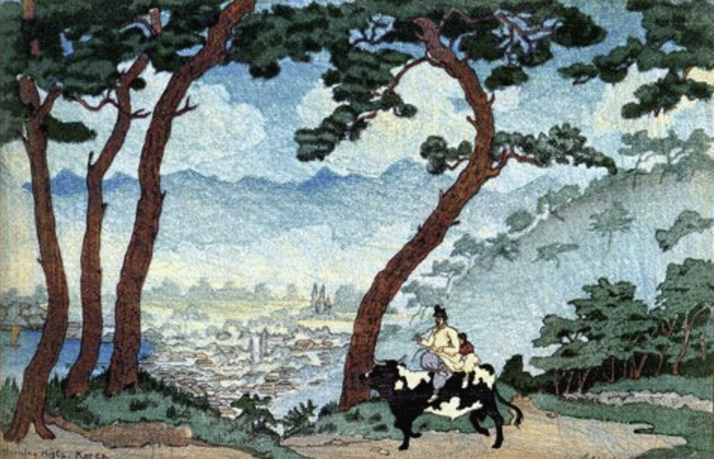 그때부터 수채화 등으로 한국의 장면들을 그렸고, 이후에도 한국과 아시아의 문화, 사람들, 전통 의상, 시장, 농촌 등의 모습을 목판화 등의 기업으로 여러 번 표현했습니다.